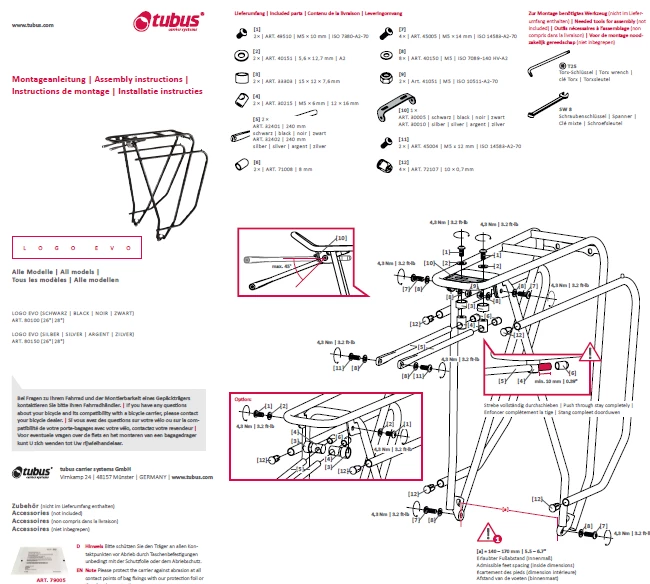 *Le choix d’indiquer “charge maximale 26kg” est mûrement réfléchi. En effet, si la charge maximale aurait été supérieure ou égale à 27kg, il aurait été nécessaire d’avoir une certification et une homologation pour le transport et l’installation de siège pour enfants. Or la marque TUBUS estime qu’il est dangeureux d’installer des sièges enfants d’où le choix volontaire d’indiquer une charge maximale de 26Kg.
