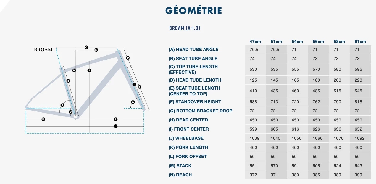 Plein de fixations en série, pas mal de dégagement en pneus (45C), possibilité de l’équiper en 650. Bref un bon plan! Large plage de taille de 47 à 61!